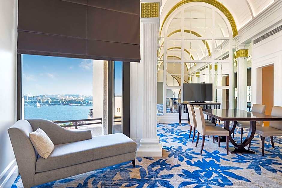 Indulge in luxury in our expansive 1615 sqft Presidential Suite with Lounge Access, offering stunning views of both the landmark and the river, perfect for 4 adults and 3 children. Enjoy complimentary shuttle service to Kite Beach and Dubai Mall/Burj Khalifa.
